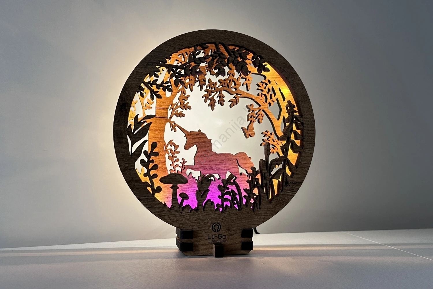 Li-Go 23568/DUB2 - LED reguliuojama stalo dekoracija LED/12W/230V 20x22 cm ąžuolas/vienaragis