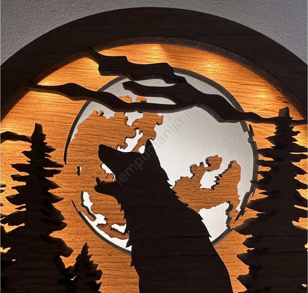 Li-Go 23574/DUB2 - reguliuojama LED stalinė dekoracija LED/12W/230V 20x22 cm ąžuolas/Vilkas ir mėnulis