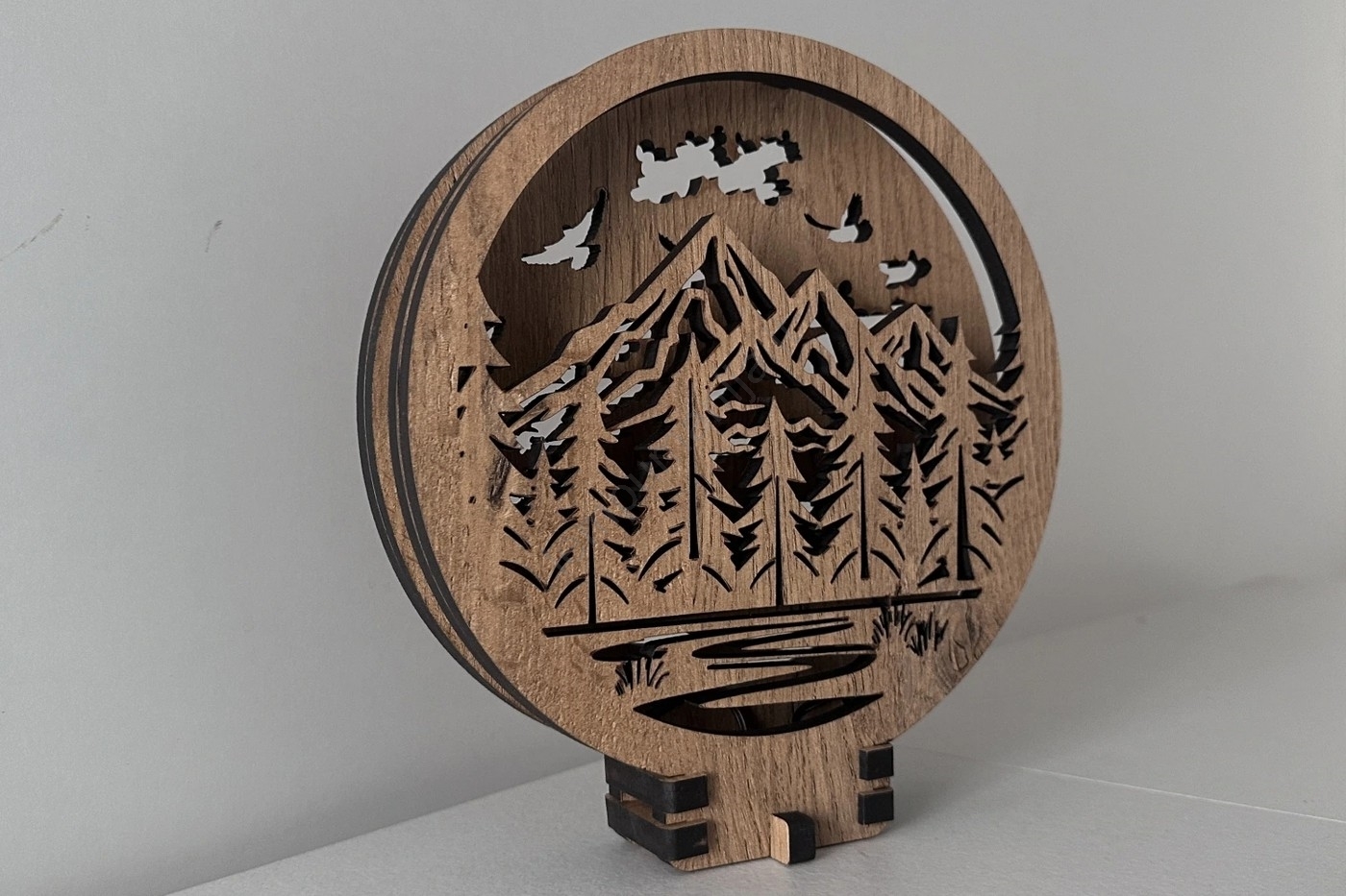 Li-Go 23583/DUB2 - Reguliuojamo ryškumo LED stalo dekoracija LED/12W/230V 20x22 cm ąžuolas/Kalnai ir miškas