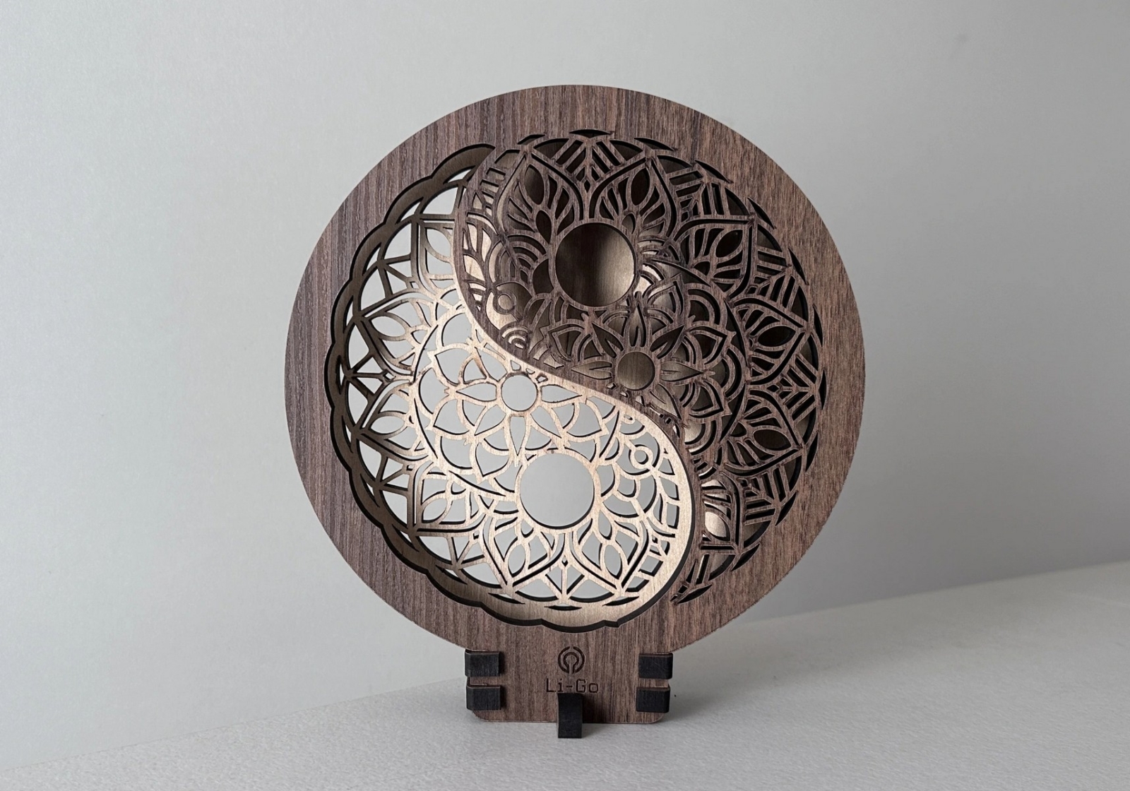 Li-Go 23607/O - reguluojamas LED stalinis dekoratyvinis šviestuvas LED/12W/230V 20x22 cm riešutmedžio/Jin Jang