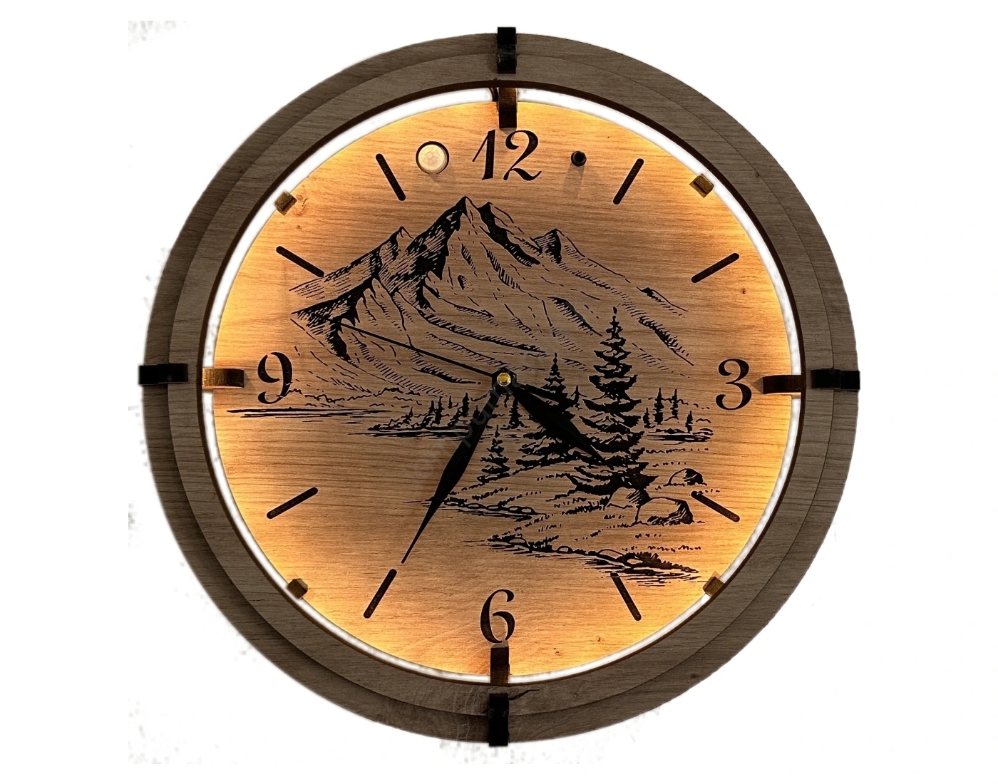 • Šviesinis laikrodis su unikaliu graviruotu motyvu.