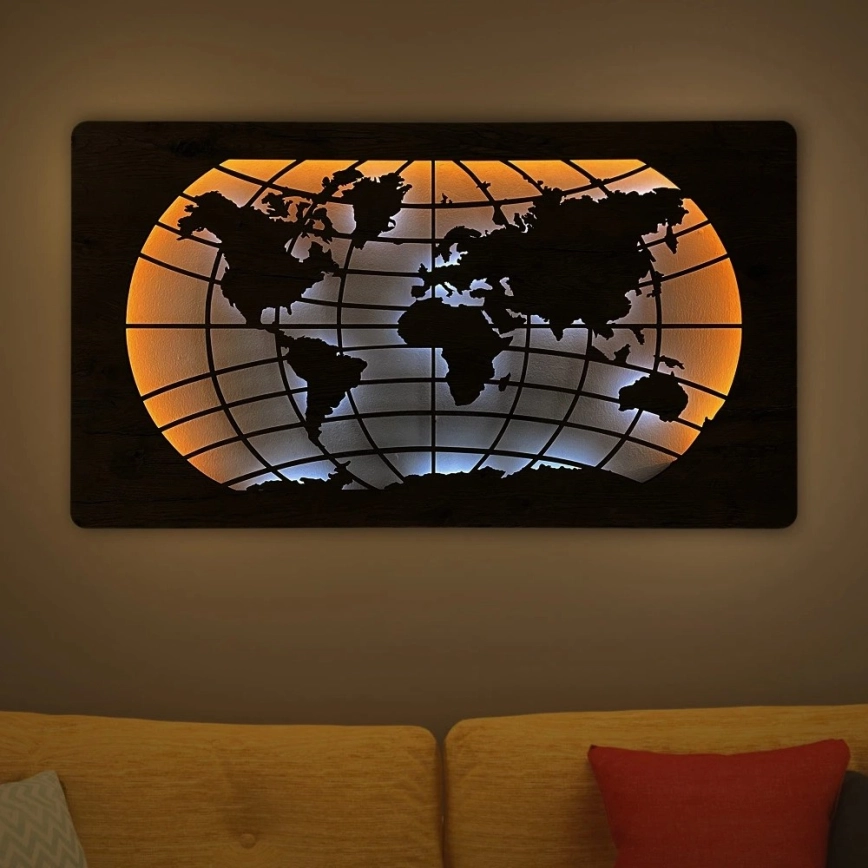 • Dekoratyvus LED šviestuvas su pasaulio žemėlapiu.