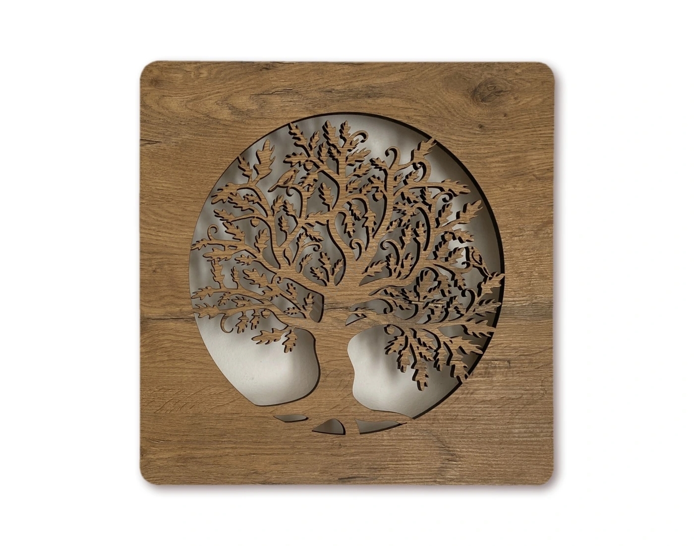 Li-Go 5275/DUB2 - reguliuojamo ryškumo LED sieninė dekoracija LED/10W/5V 20000 mAh 42x42 cm ąžuolas/Ąžuolas ratu + nuotolinis valdymas