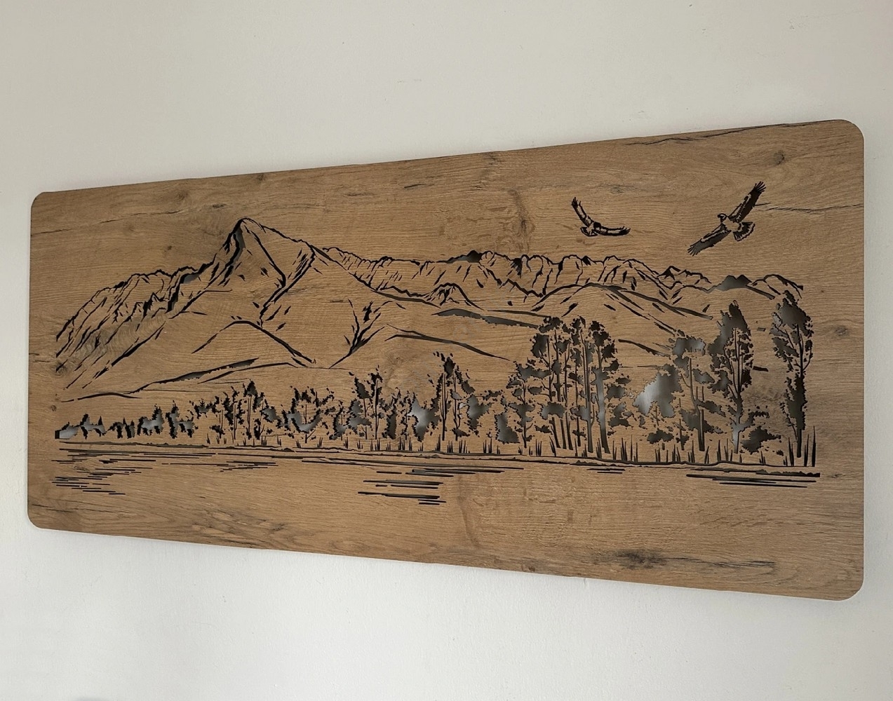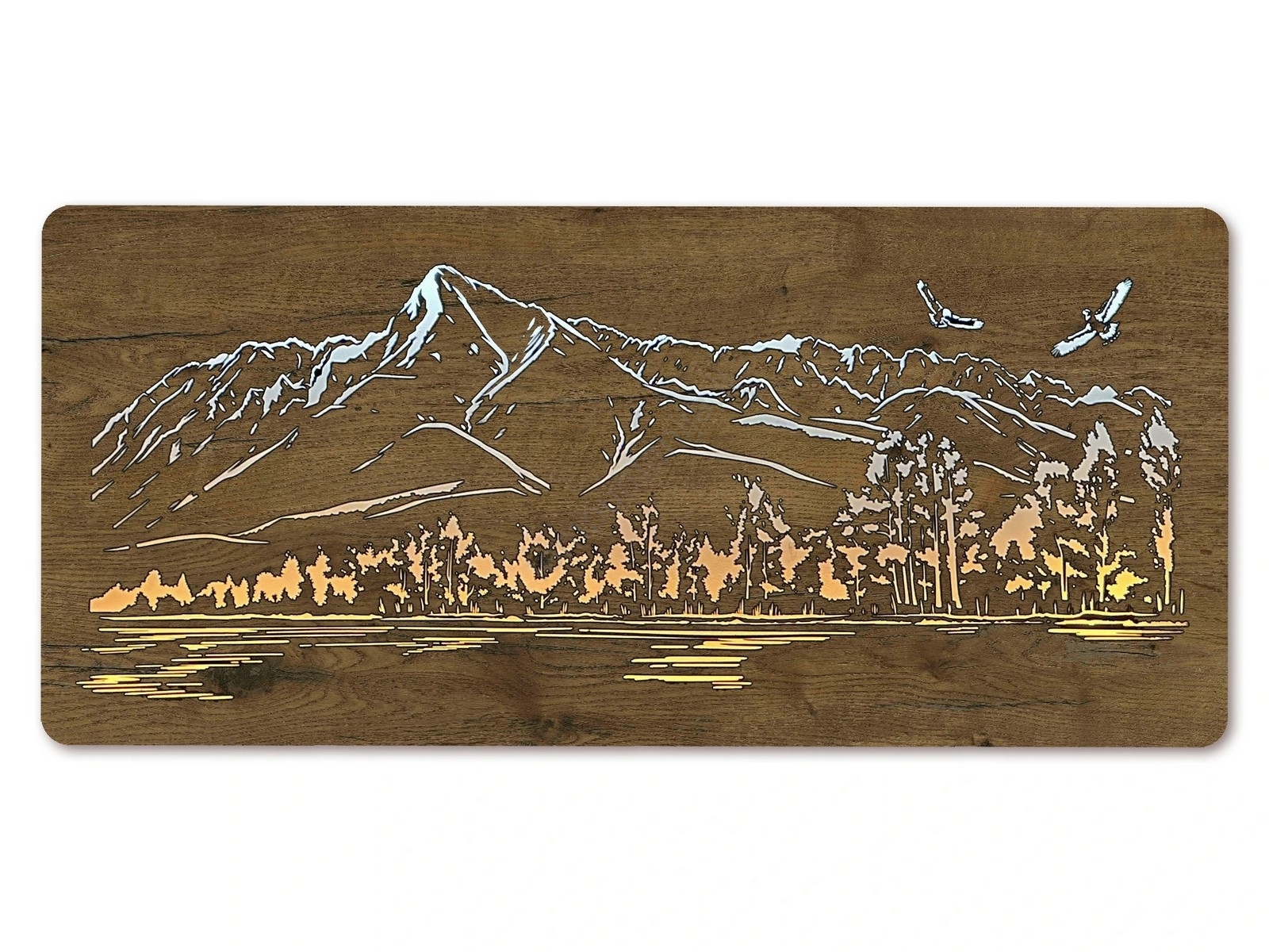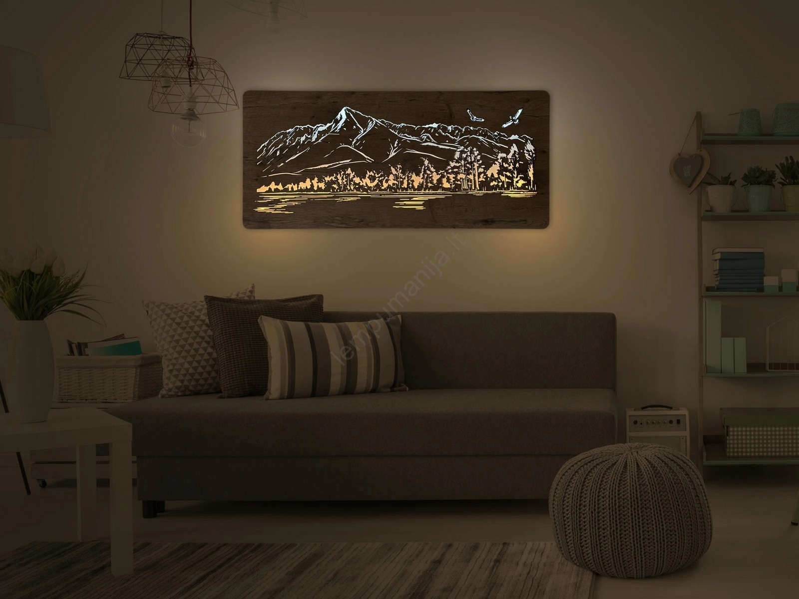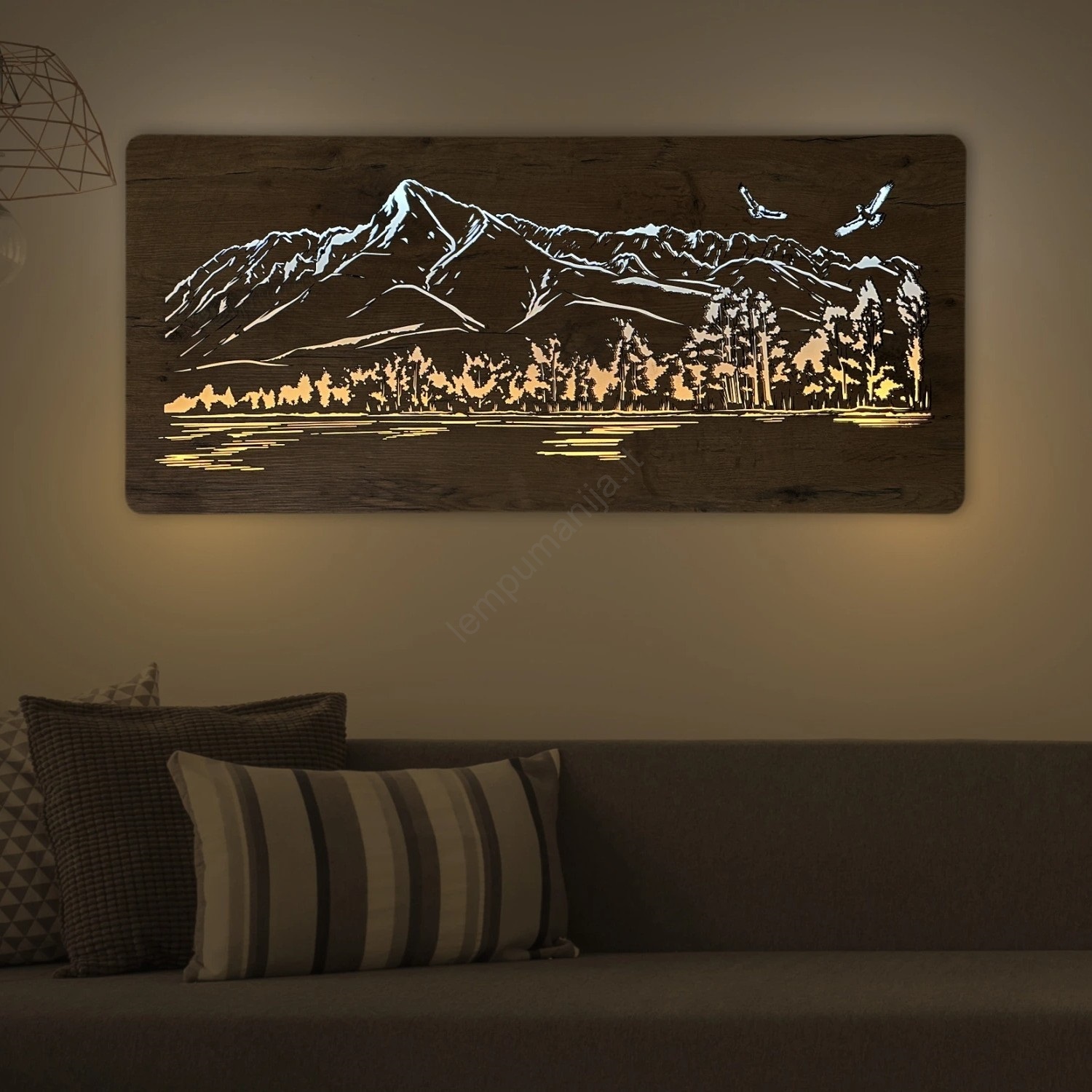 Li-Go 5589/A/DUB2 - LED dimeriuojama sieninė dekoracija LED/10W/5V 30000 mAh 110x50 cm ąžuolas/Kalnai su paukščiais