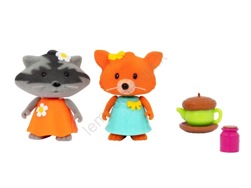 • 19 dalių rinkinys apima namelį, meškėno figūrėlę, lovą, lentyną, 2 kėdes, stalą, arbatinuką, 1 dubenėlį, 2 lėkštes, dubenėlį su grybais, dubenėlį su giliukais, dubenėlį su gėlėmis, 3 butelius ir 2 puodelius.
