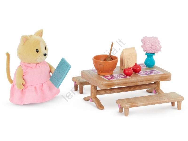 • Baldų rinkinys leis įrengti miegamąjį ir valgomojo kambarį Li'l Woodzeez gyvūnėlių nameliui.