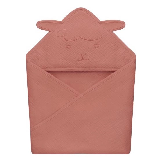 Lionelo - Vaikiškas muslininis rankšluostis su kapišonu Koralų raudona