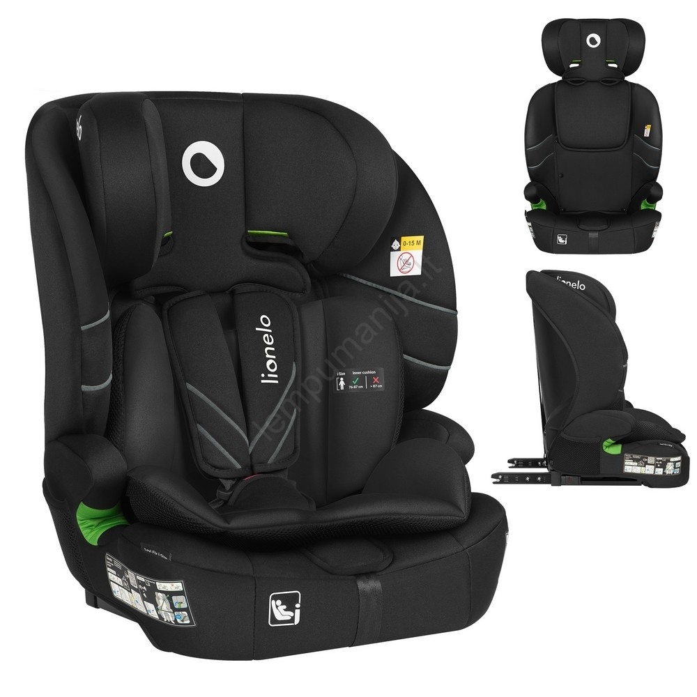 Lionelo - Automobilinė kėdutė LEVI FIX i-Size 76-150 cm Juoda Carbon