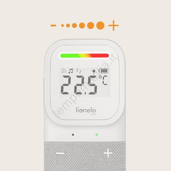 • Ekranas rodo ne tik temperatūrą, bet ir drėgmės lygį vaiko kambaryje.