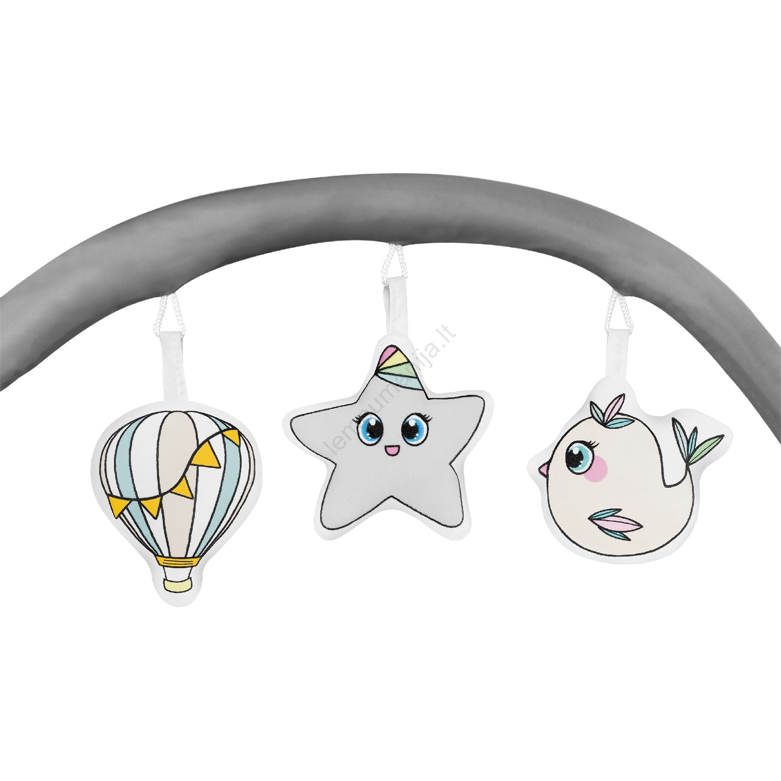 • Žaislai ant nuimamo lankelio skatina dėmesį ir aktyvumą, padeda ugdyti smulkiąją motoriką.