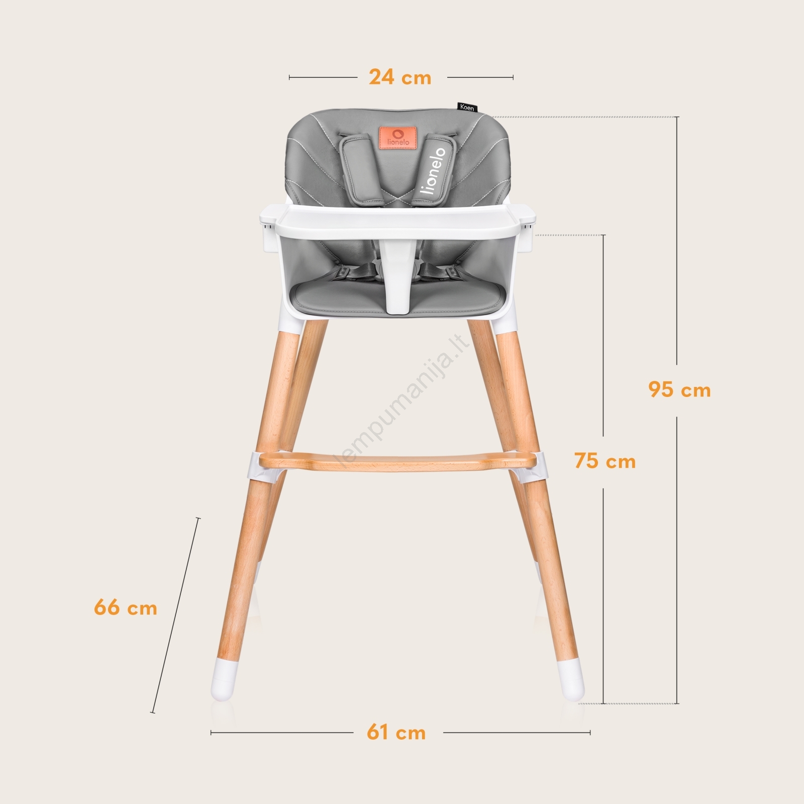 Lionelo - vaikiška valgomojo kėdė 2in1 KOEN Pilkas akmuo | Lempumanija