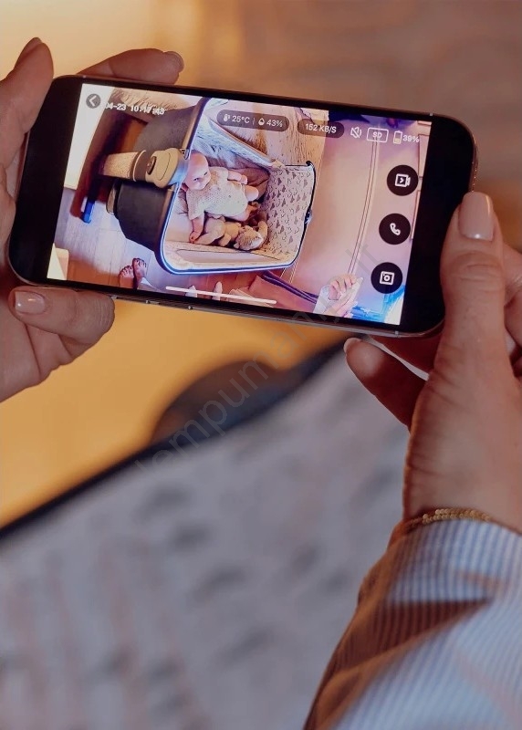 • Dviejų krypčių ryšys ir galimybė leisti lopšines ar gamtos garsus padeda nuotoliniu būdu nuraminti kūdikį.