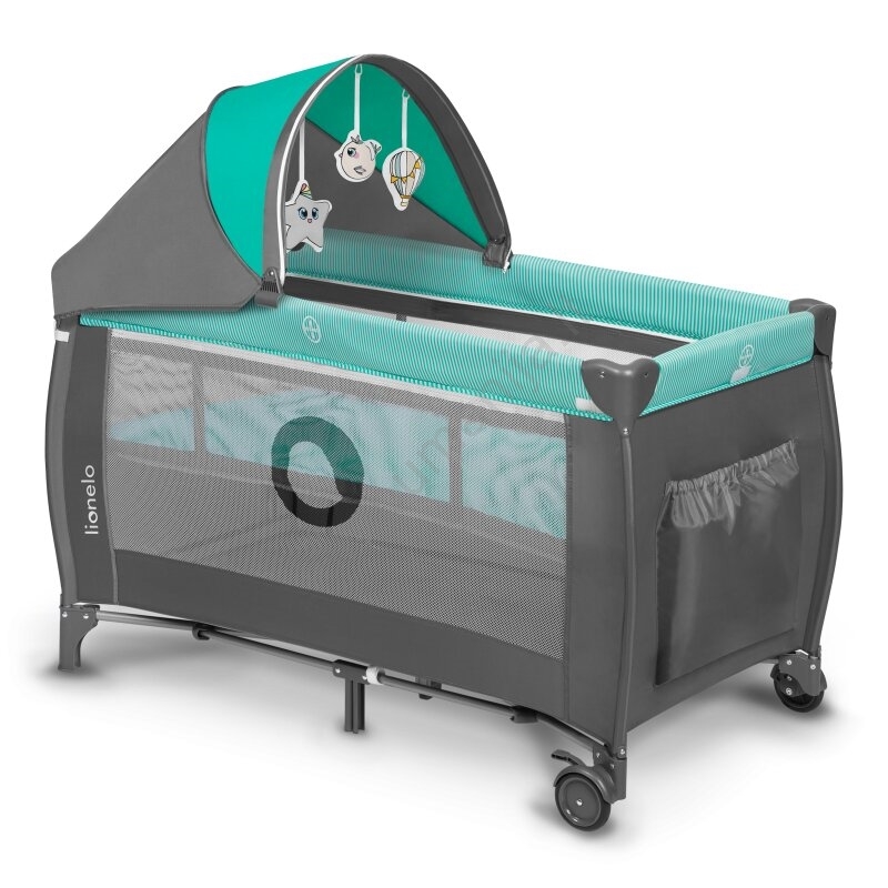Lionelo - Kelioninė lovelė SVEN PLUS pilka/tirkizinė