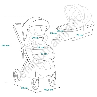 • Pilnas priedų rinkinys (tinklelis nuo uodų, lietaus apsauga, užvalkalai, krepšys, vystyklų keitimo pagalvėlė).