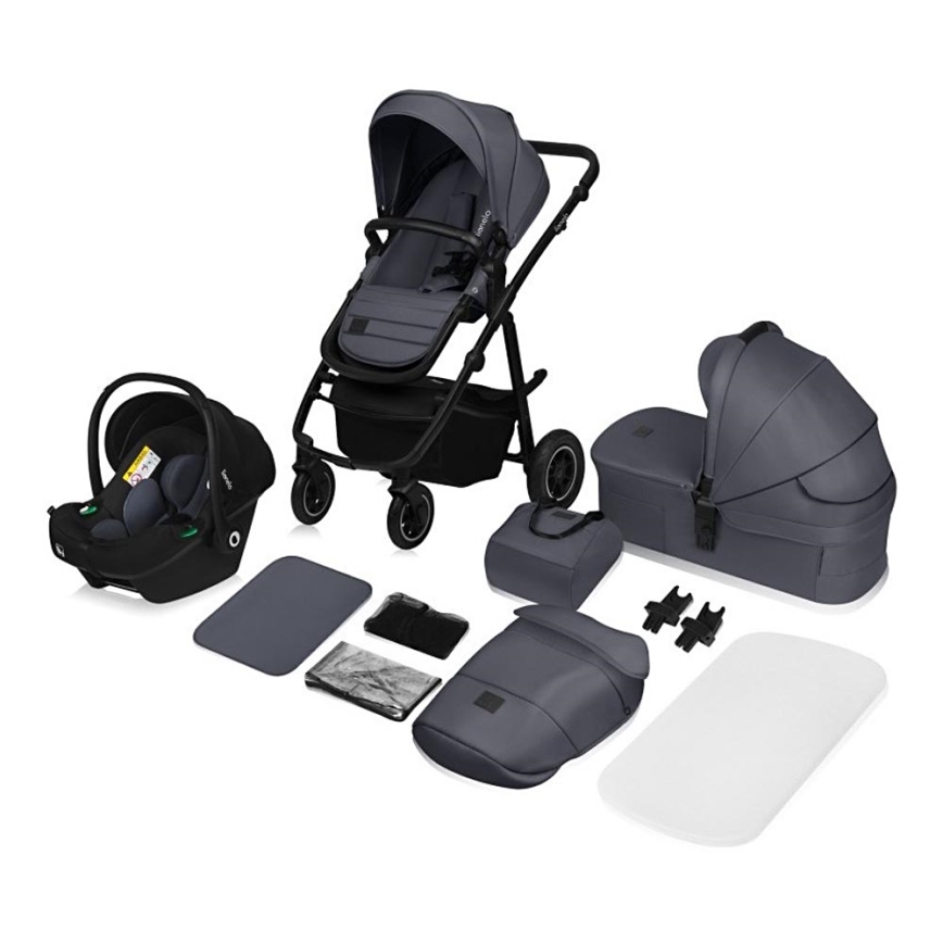 Lionelo - Kombinuotas vežimėlis 3in1 AMBER PLUS Grafito pilka