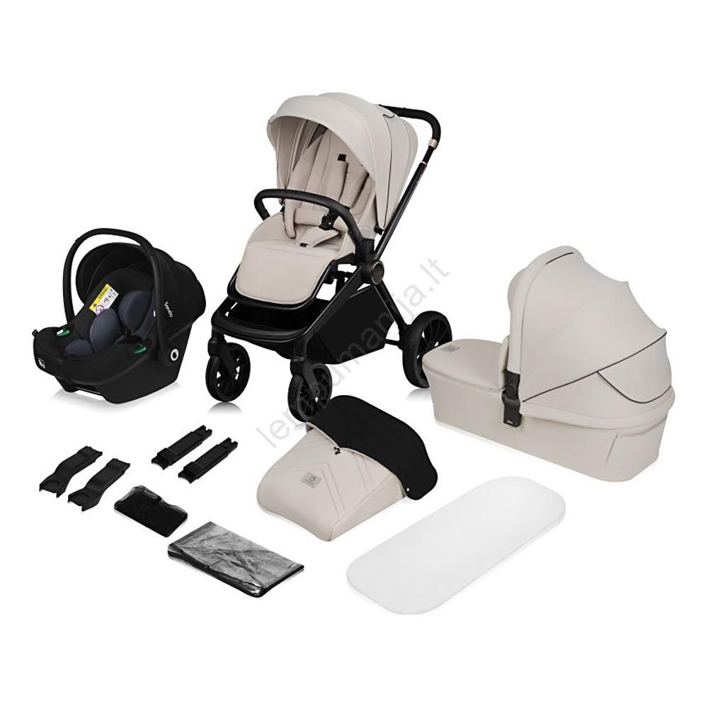 Lionelo - Kombinuotas 3in1 vežimėlis MIKA PLUS, smėlio spalvos