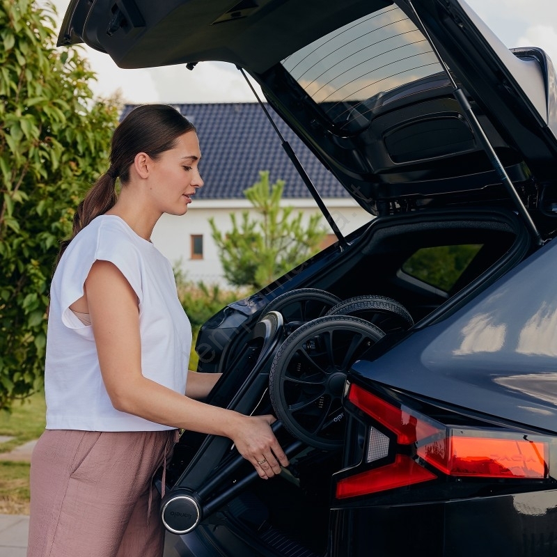 • Lopšys, kurį galima pakreipti prieš važiavimo kryptį refliukso prevencijai; adapteriai su atminties funkcija patogiam nuėmimui; kišenės viduje ir išorėje; sulankstomas iki plokščios padėties.