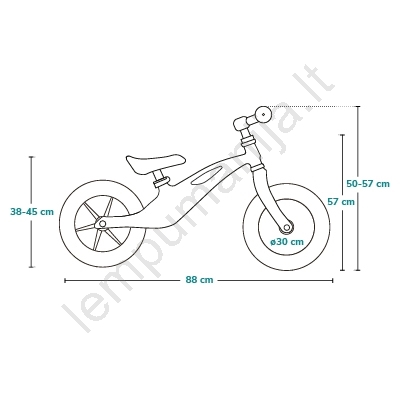 • Aukštis reguliuojamas: sėdynė (35 - 43 cm) ir rankenos (50 - 57 cm).