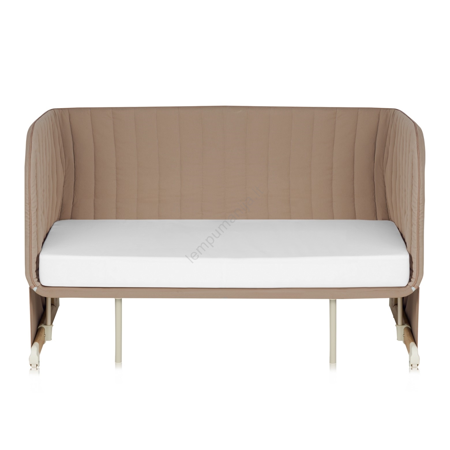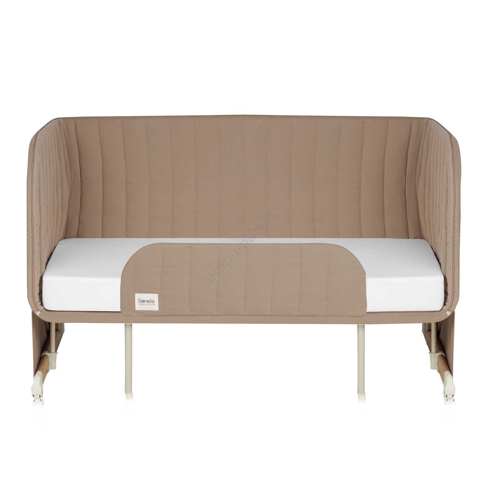 • Prie lovos prisišliejanti dalis su nuimama šonine siena ir reguliuojamomis kojelėmis, pritaikomomis prie tėvų lovos aukščio.