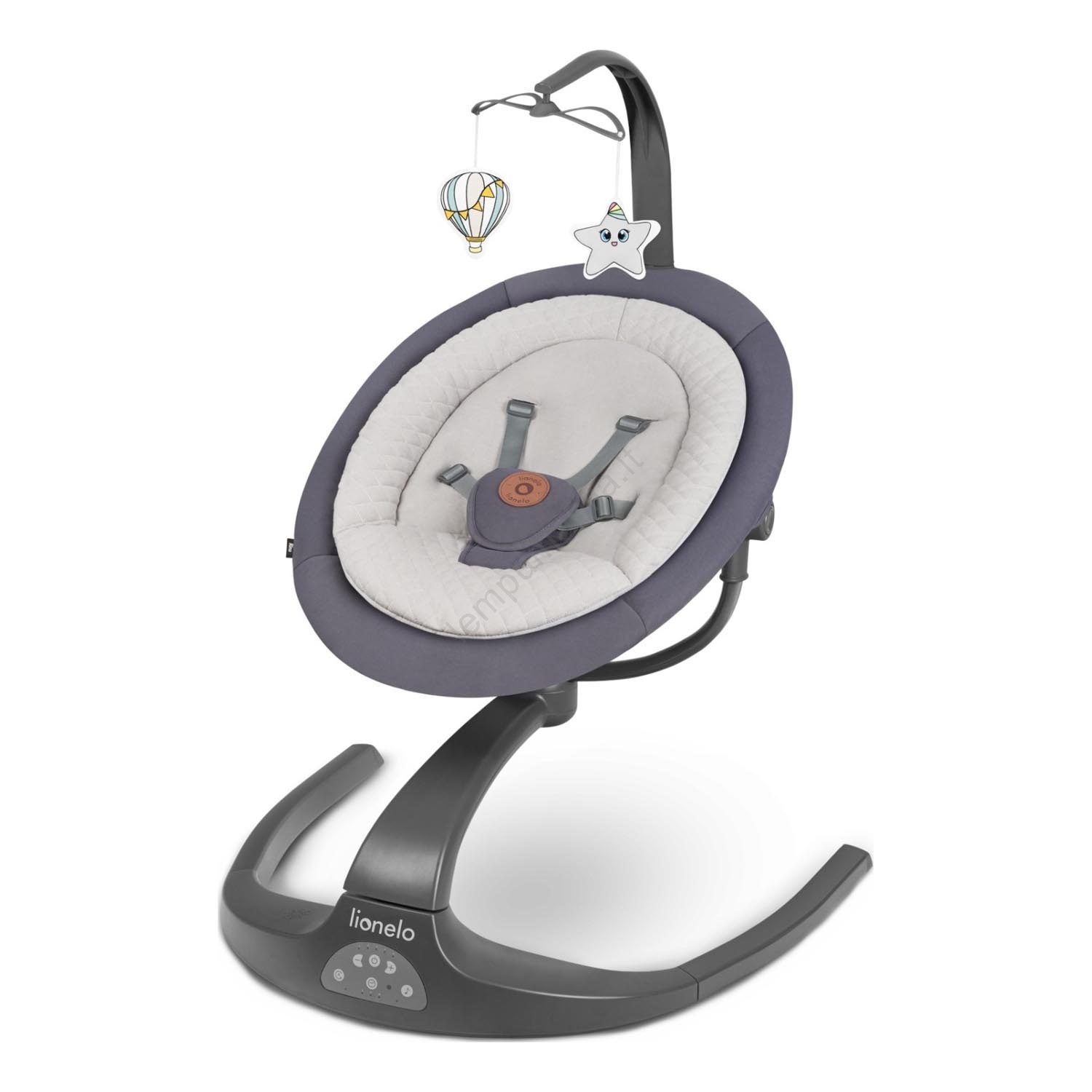 Lionelo - Vaikiškos supynės su melodija RINA 4xAA Betoninė pilka + su nuotoliniu pultu