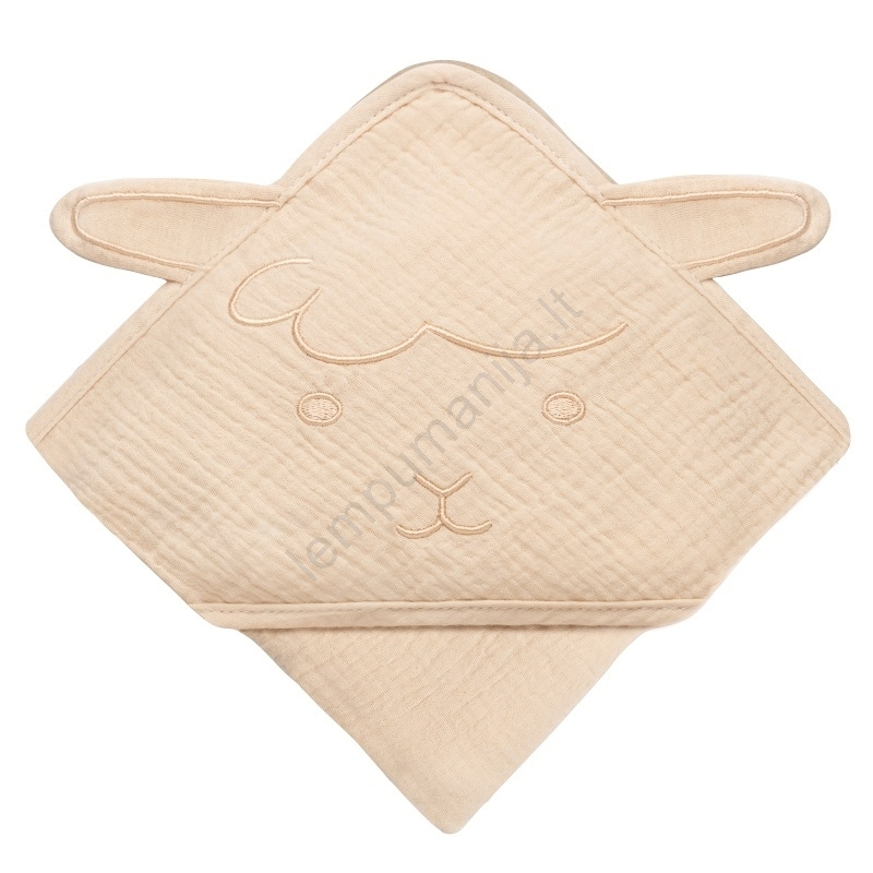 Lionelo - Vaikiškas rankšluostis su kapišonu iš musselino, smėlio spalvos