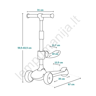 • Nuėmus sėdynę paspirtukas tinka vaikams iki 50 kg.