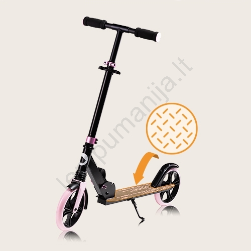 • Patogi atrama užtikrina saugų ir stabilų paspirtuko pastatymą be poreikio remti jį į kitą daiktą.