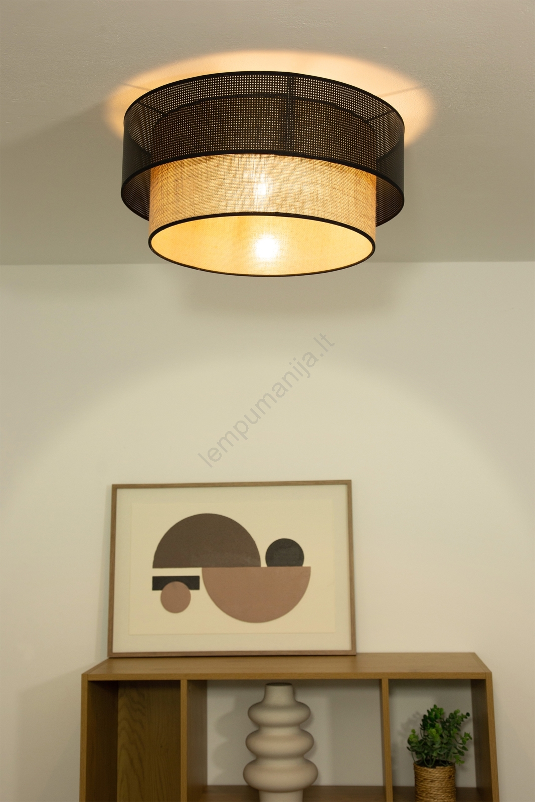 Lubinis šviestuvas BORHO 1xE27/60W/230V skersmuo 40 cm juodas/džiutas | Lempumanija