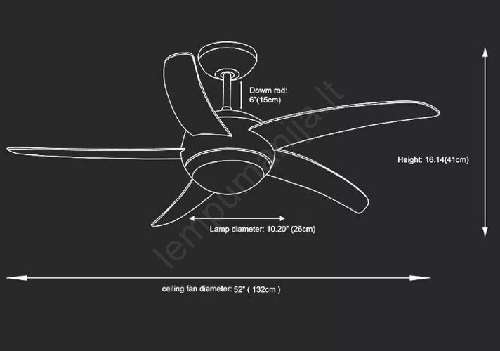• Lubinis ventiliatorius su apšvietimu ir nuotoliniu valdymu.