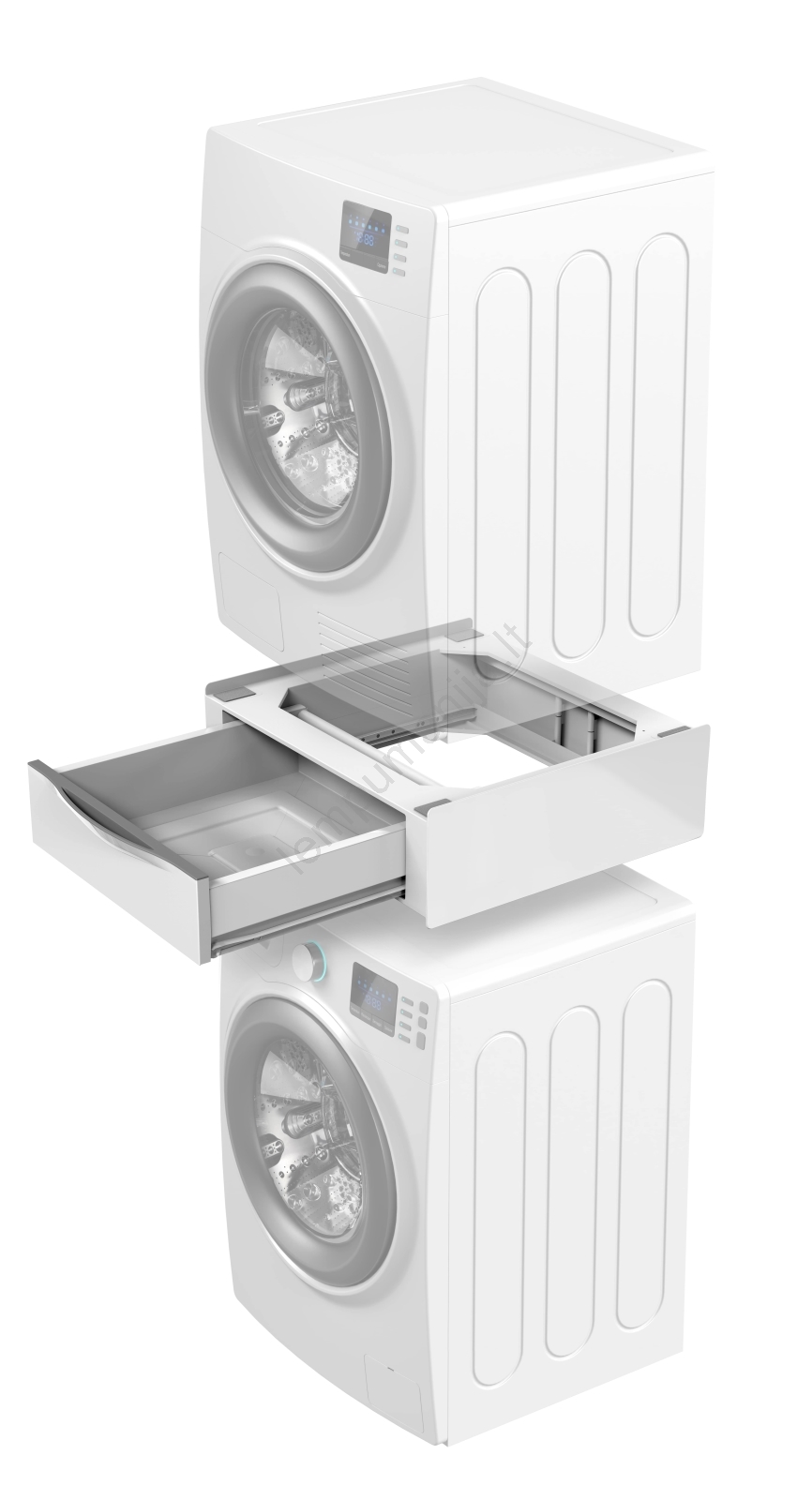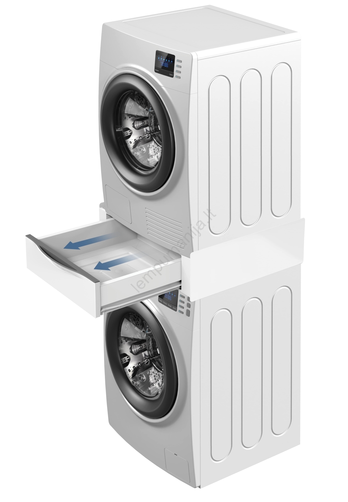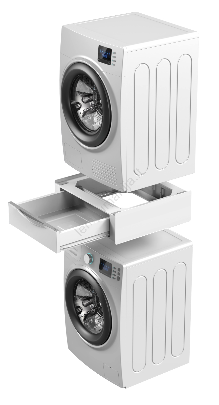 • Universalus jungiamasis rinkinys priekinio pakrovimo skalbimo mašinoms ir džiovyklėms iki 60 cm pločio.