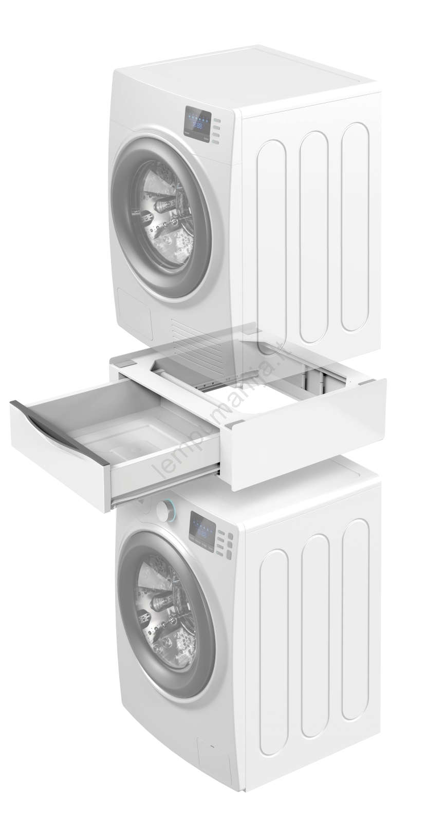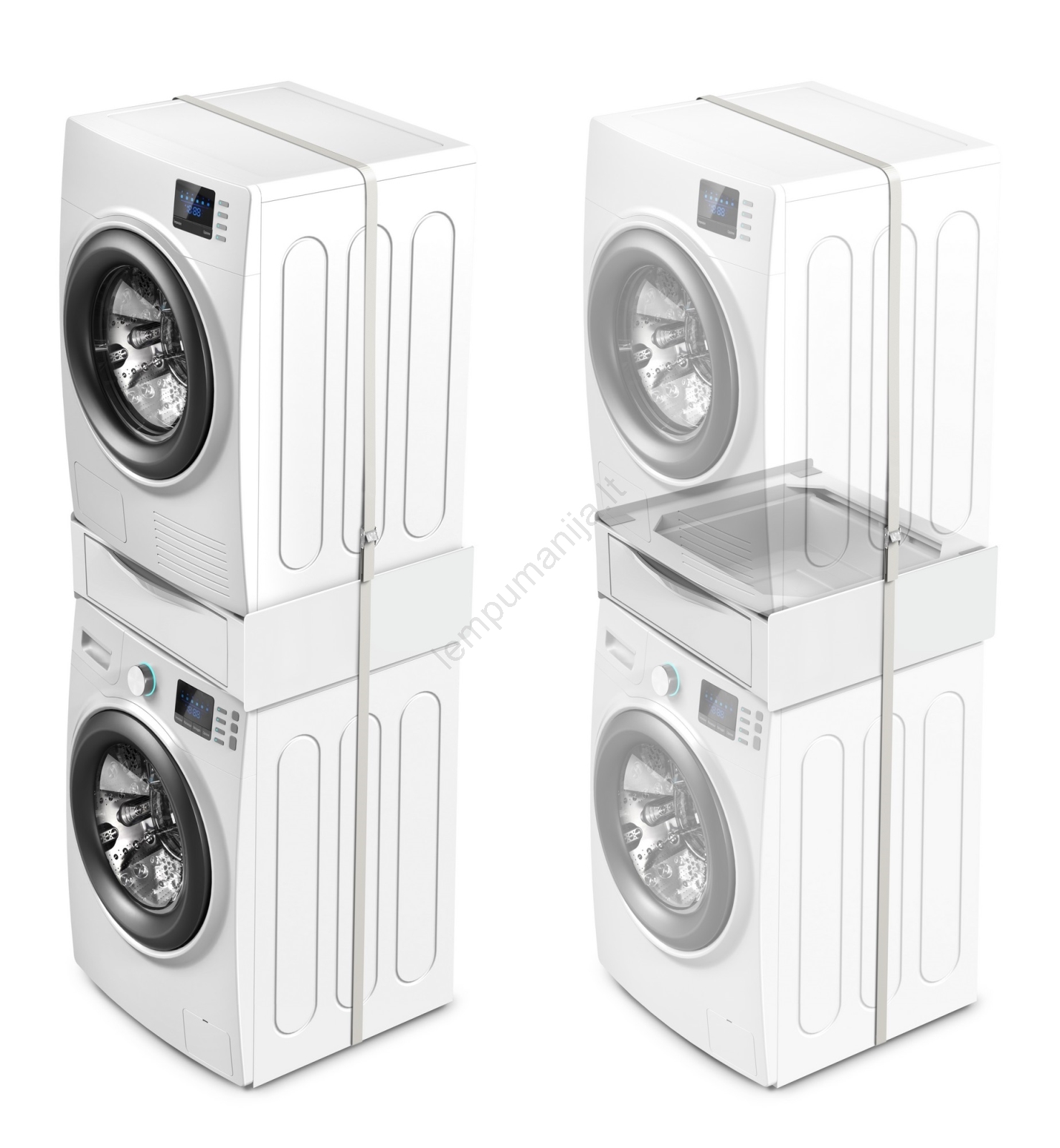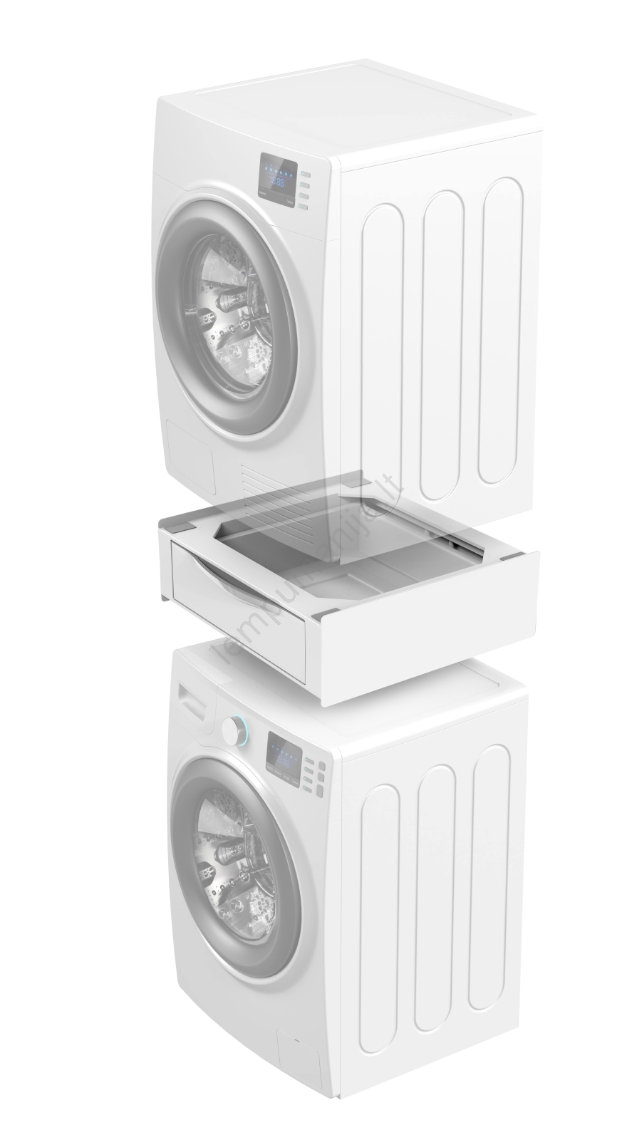 • Universalus jungiamasis rinkinys priekinio pakrovimo skalbimo mašinoms ir džiovyklėms iki 60 cm pločio.