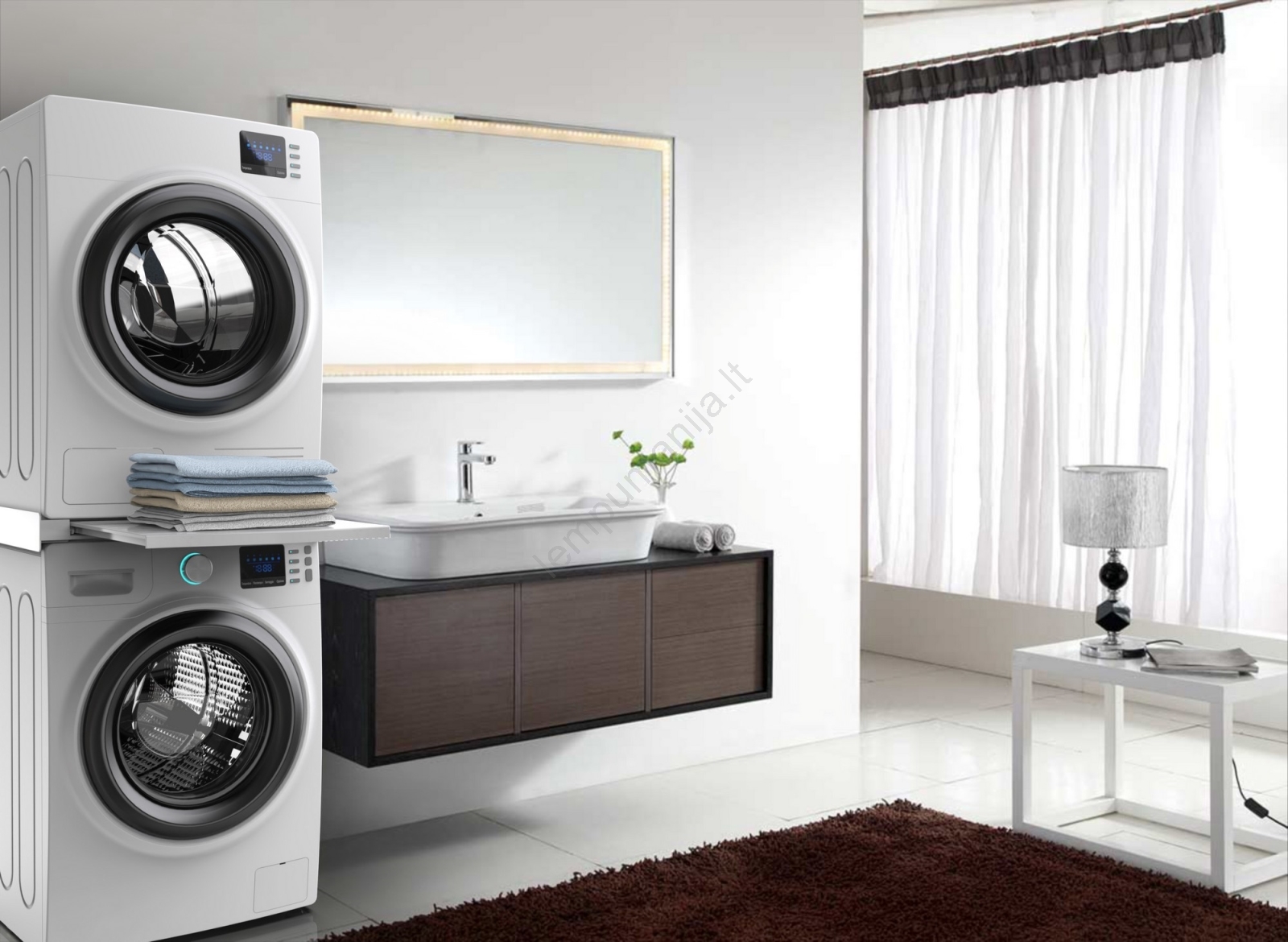 Meliconi 656113 - Pakyla skalbimo mašinai ir džiovyklai su ištraukiamu stalčiumi 70 cm balta | Lempu