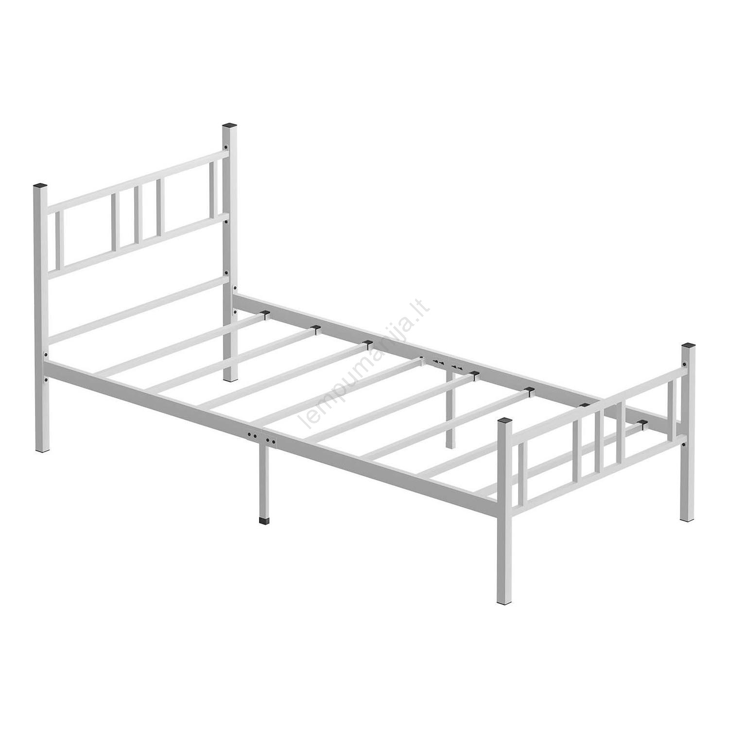 Metalinė viengulė lova PIRON 90x200 cm, balta, maksimali apkrova 120 kg | Lempumanija