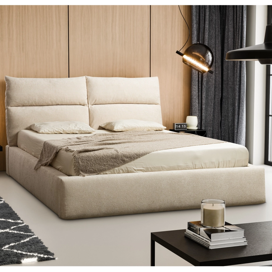 Apmušta lova be čiužinio BASIL 160x200 cm smėlinė | Lempumanija