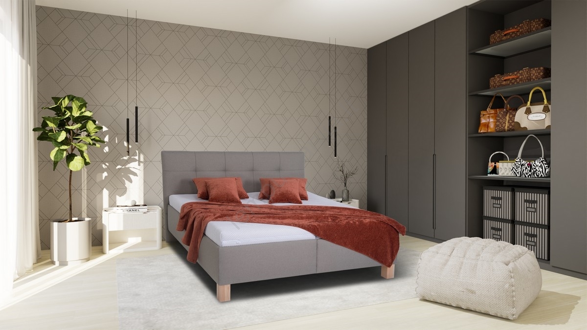 • Apmušta lova su čiužiniu ir integruota patalynės dėže MARIA 180x200 cm taupe