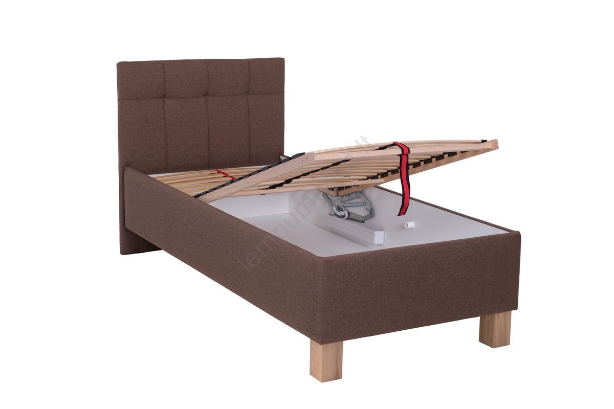 • Apmušta lova MARIA ONE 90x200 cm su čiužiniu ir patalynės dėže, ruda