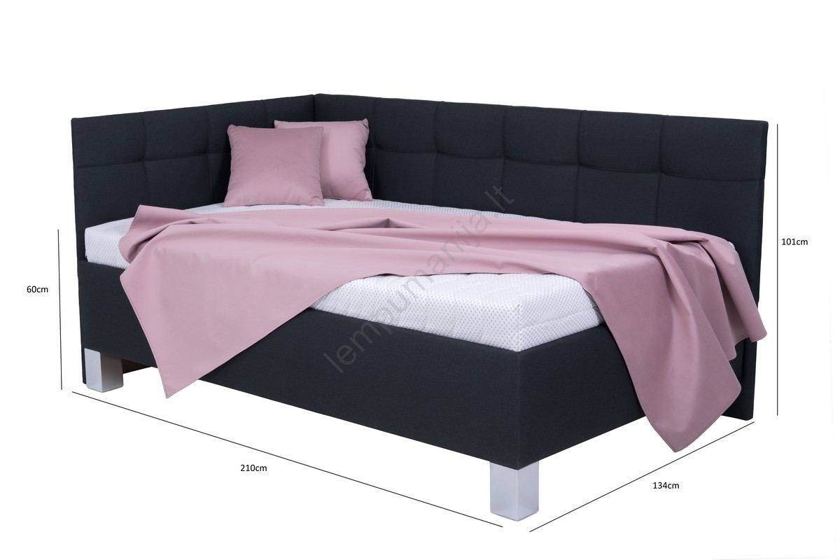 • Universali kairės/dešinės pusės versija kampiniams galvūgaliams - kairį arba dešinį kampą pasirinksite montuodami namuose.