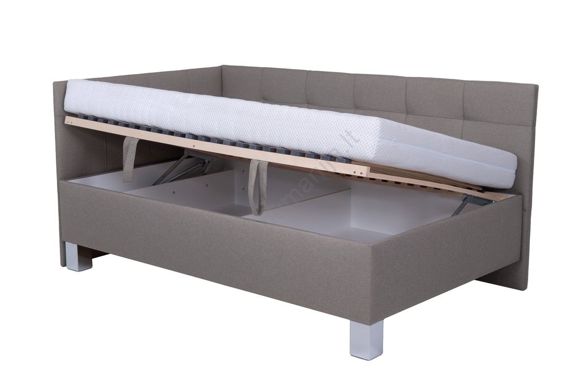 • Lova yra aprūpinta šoniniu pakeliamu mechanizmu, kad būtų lengvas priėjimas prie erdvaus sandėliavimo ploto, kuris papildomai turi ventiliacines grotelės geresnei oro cirkuliacijai.