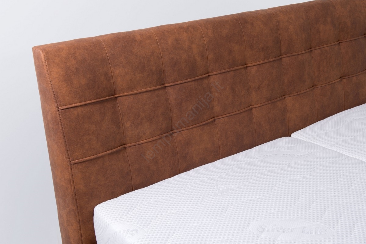 • Apmušta lova VIOLET 180x200 cm su čiužiniu ir patalynės dėže, konjako ruda