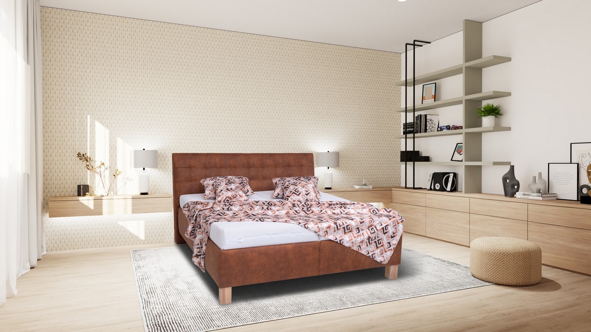 • Apmušta lova su patalynės dėže be čiužinio VIOLET 180x200 cm konjako rudos spalvos
