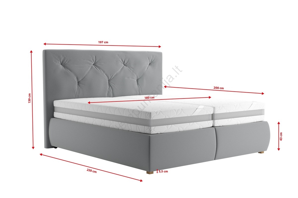 Boxspring tipo lova su čiužiniu ir antčiužiniu ELEN 180x200 cm pilka