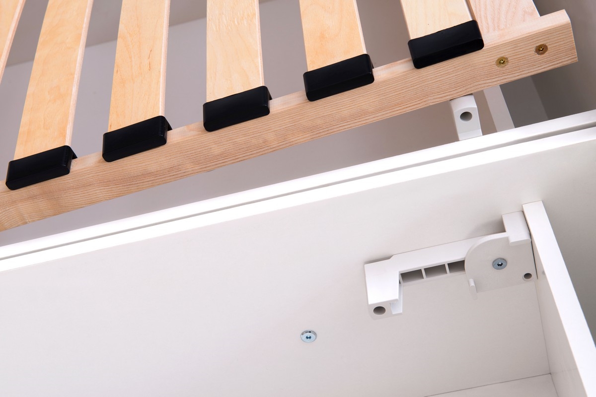 • Lova turi didelę talpyklą su prieiga iš kojų – skirta patalynės ir kitų daiktų laikymui.