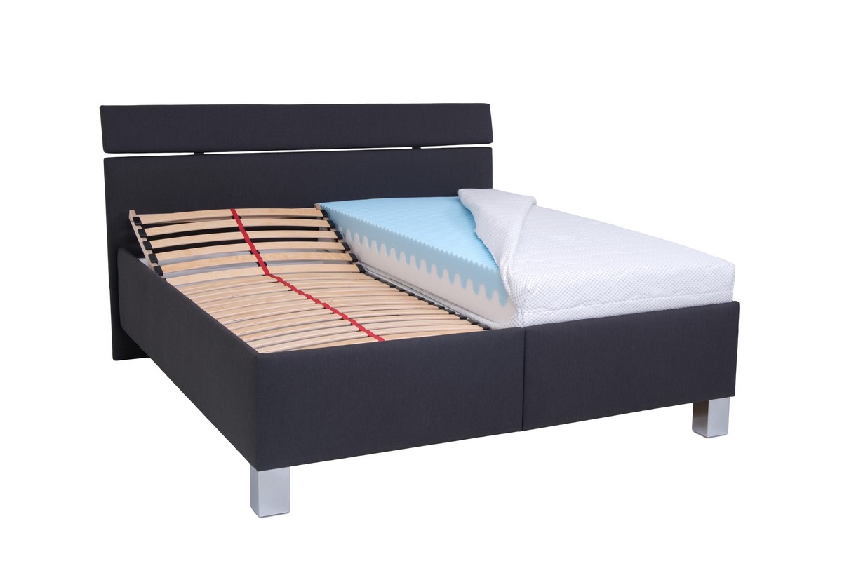 • Apmušta lova ALIS 180x200 cm su čiužiniu ir patalynės dėže, antracitas