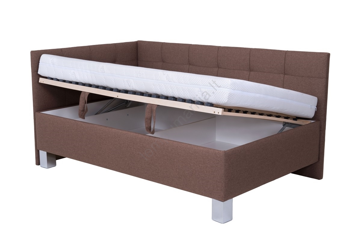 • Apmušta lova MARIA PETITE 120x200 cm su čiužiniu ir patalynės dėže, ruda