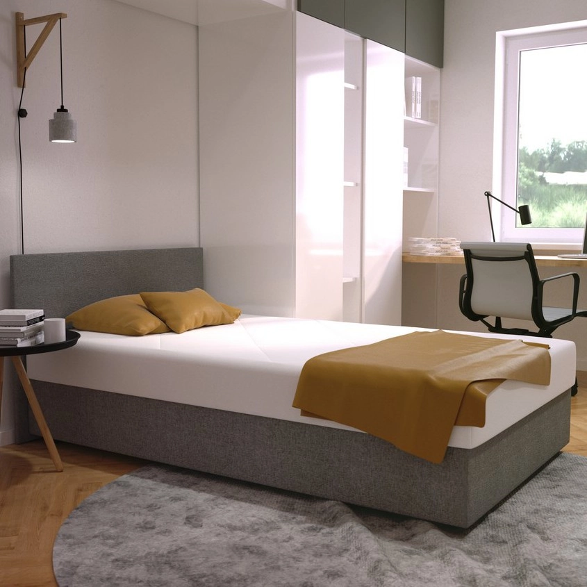 Apmušta lova DARIA su patalynės dėže ir čiužiniu, 120x200 cm, pilka | Lempumanija