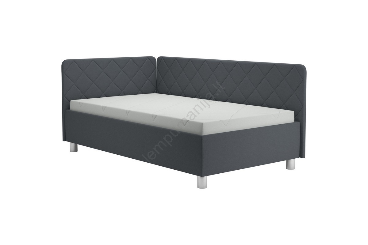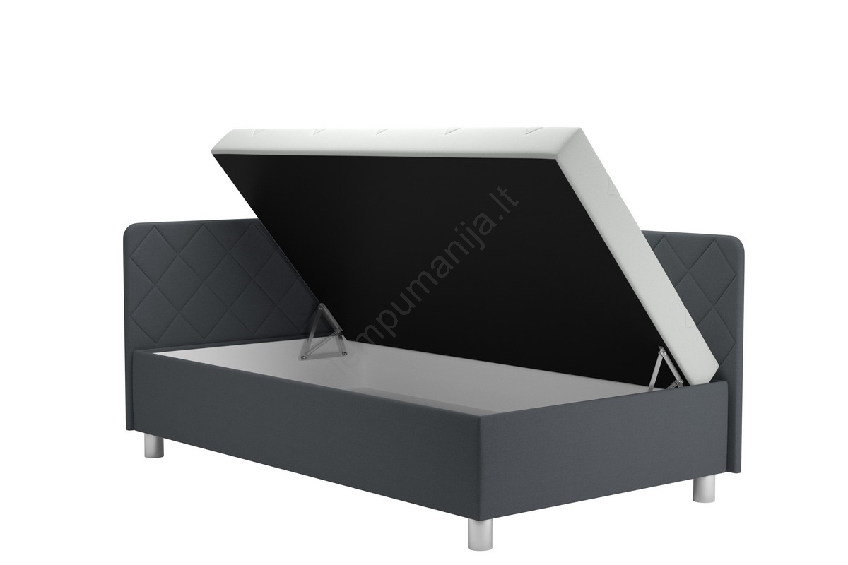Apmušta lova EMILE 110x200 cm su daiktų laikymo vieta ir čiužiniu, pilka | Lempumanija