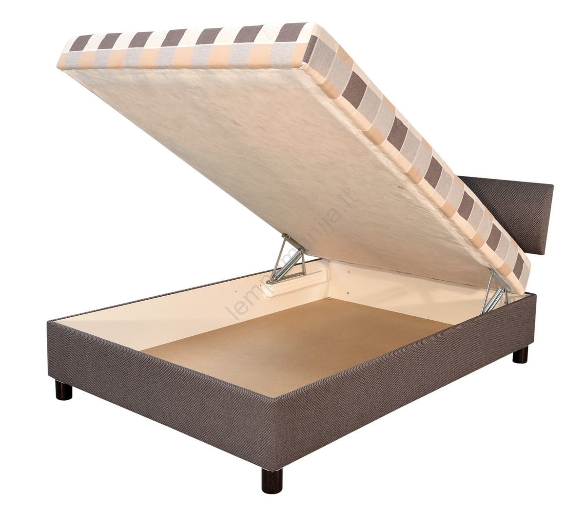 Apmušta lova su daiktų laikymo vieta ir čiužiniu GEORGE 140x200 cm ruda | Lempumanija