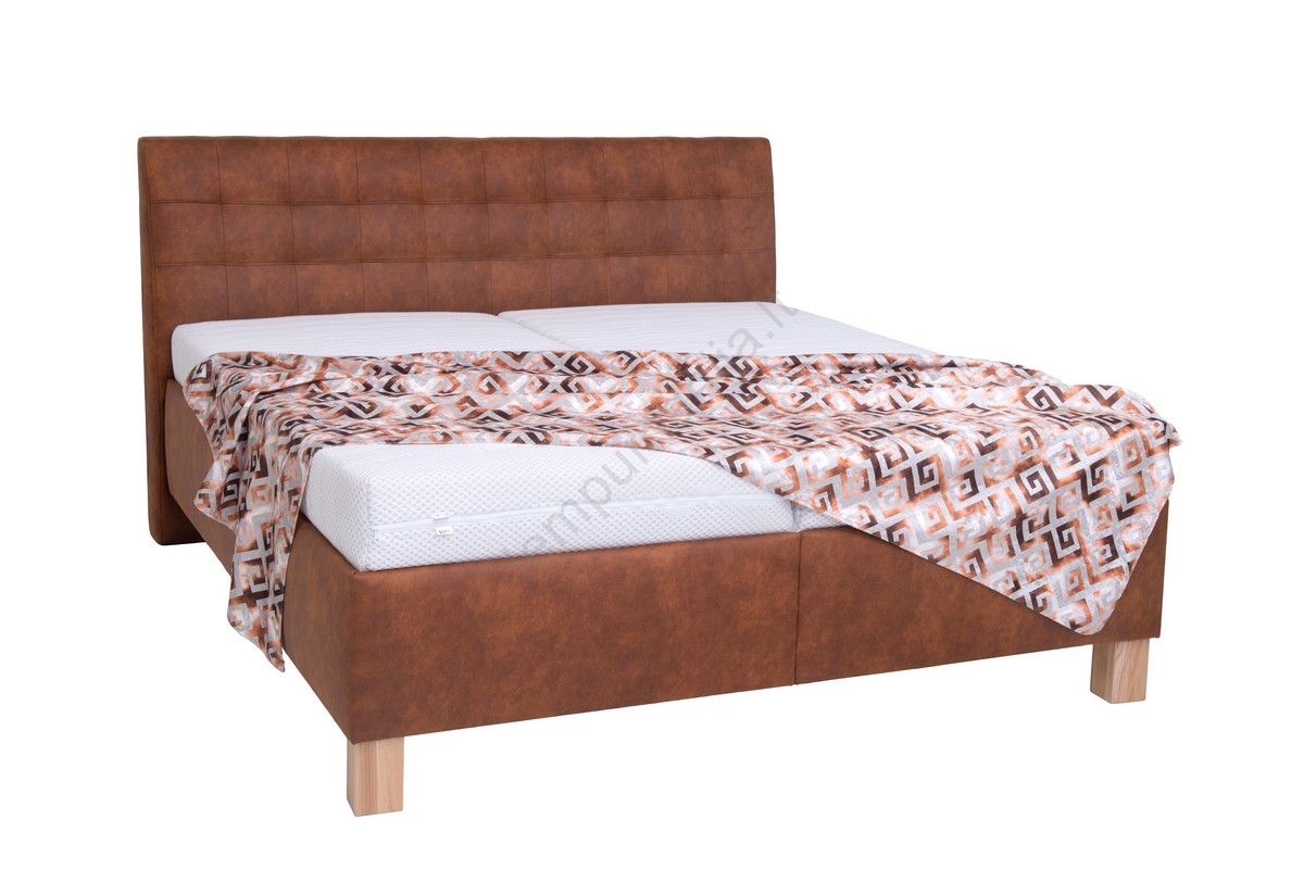 • Apmušta lova su čiužiniu ir patalynės dėže VIOLET 160x200 cm konjako ruda