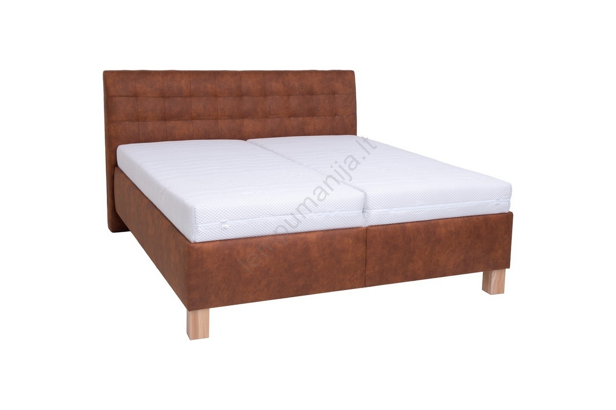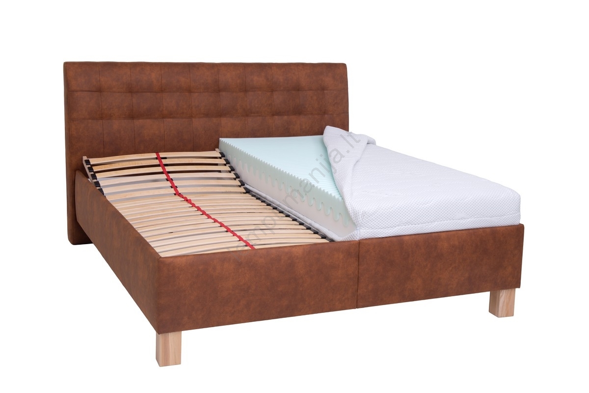 • Apmušta lova VIOLET 180x200 cm su čiužiniu ir patalynės dėže, konjako ruda