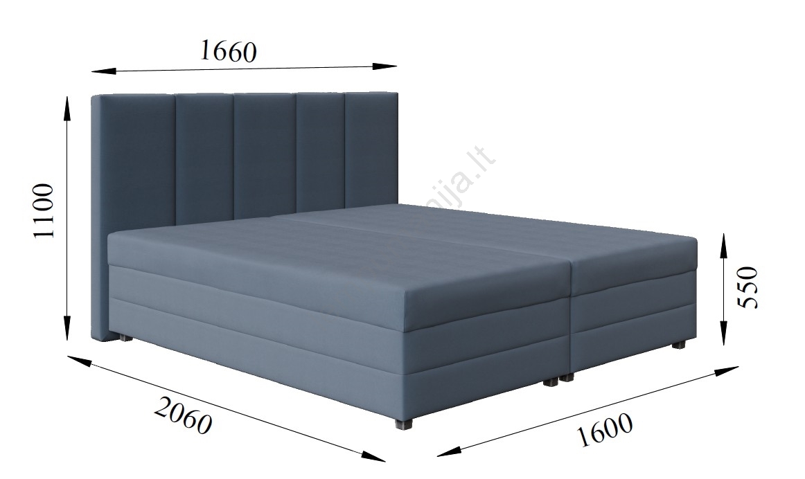 • Apmušta lova su spyruokliniu čiužiniu ir patalynės dėže ISABEL 160x200 pilka